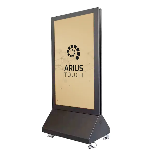 Facilement déplaçable grâce à ses roulettes et disponible en filaire ou en autonome (batterie d’environ 8h), ce totem novateur affichera votre communication en toutes circonstances, de face comme de dos.